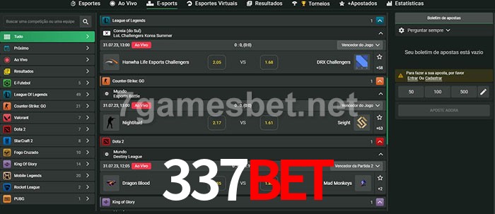 O 337Bet oferece uma grande seleção de opções de apostas em e-sports com probabilidades competitivas